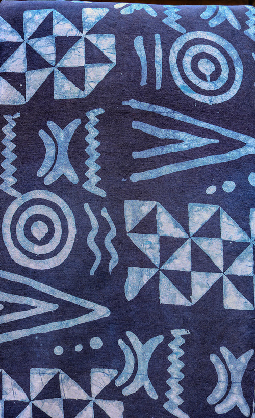 Although not super visible in the images, this is a two-color batik cloth. The first color is a light blue, and then the last color is an indigo blue.